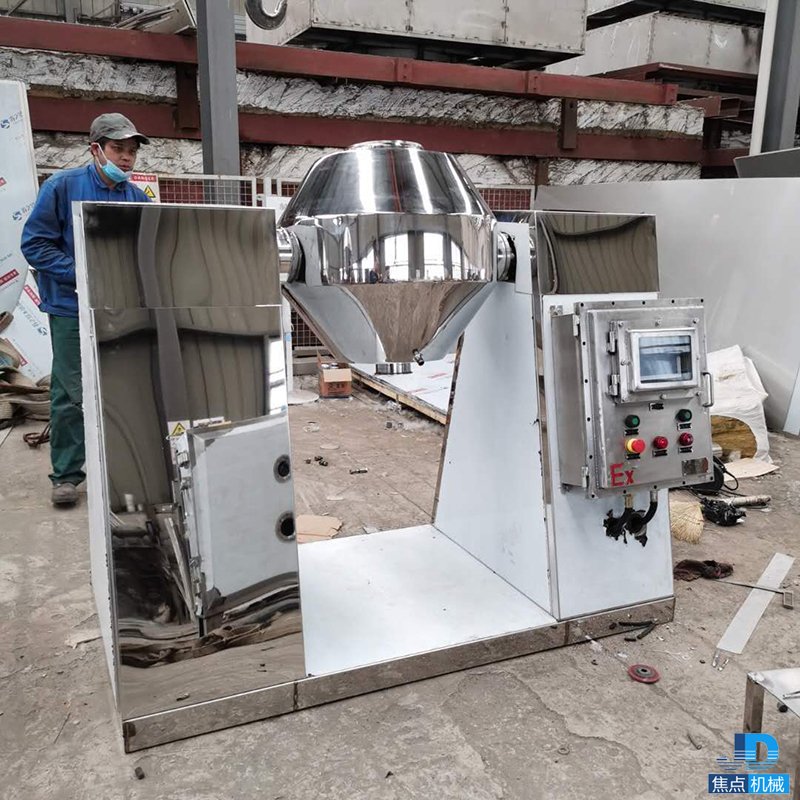 2、在動力驅(qū)動下,罐體作緩慢旋轉(zhuǎn),罐內(nèi)物料不斷地混合,從而達到強化干燥的目的。