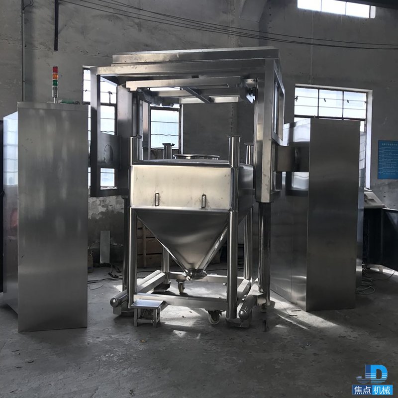 3、 混合容器:方錐型特殊的結(jié)構(gòu)形式采用優(yōu)質(zhì)不銹鋼制作,內(nèi)外表面均進(jìn)行拋光,無死角、易清洗,符合GMP要求,出料由蝶閥控制。物料在自重的作用下順利排出。無積料、無交叉污染等優(yōu)點(diǎn)。