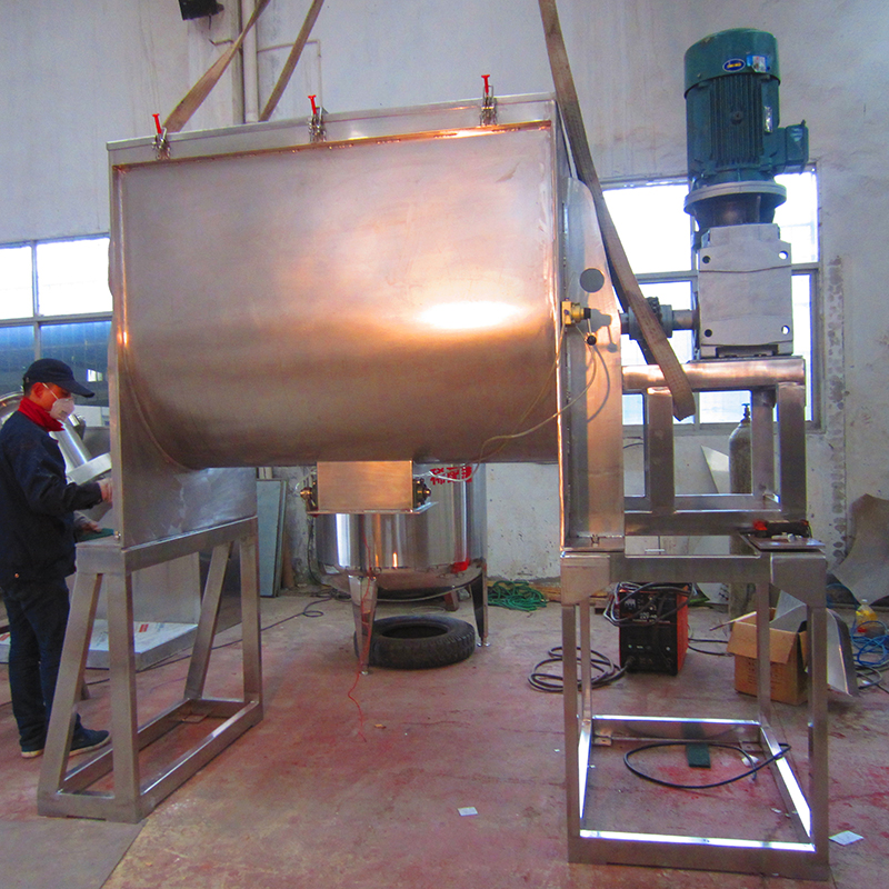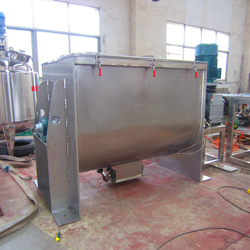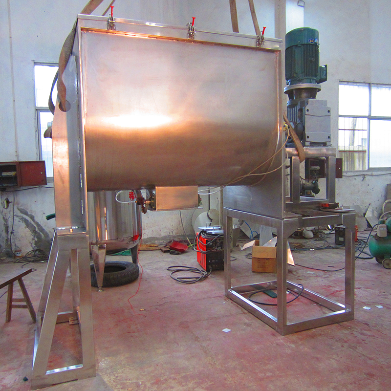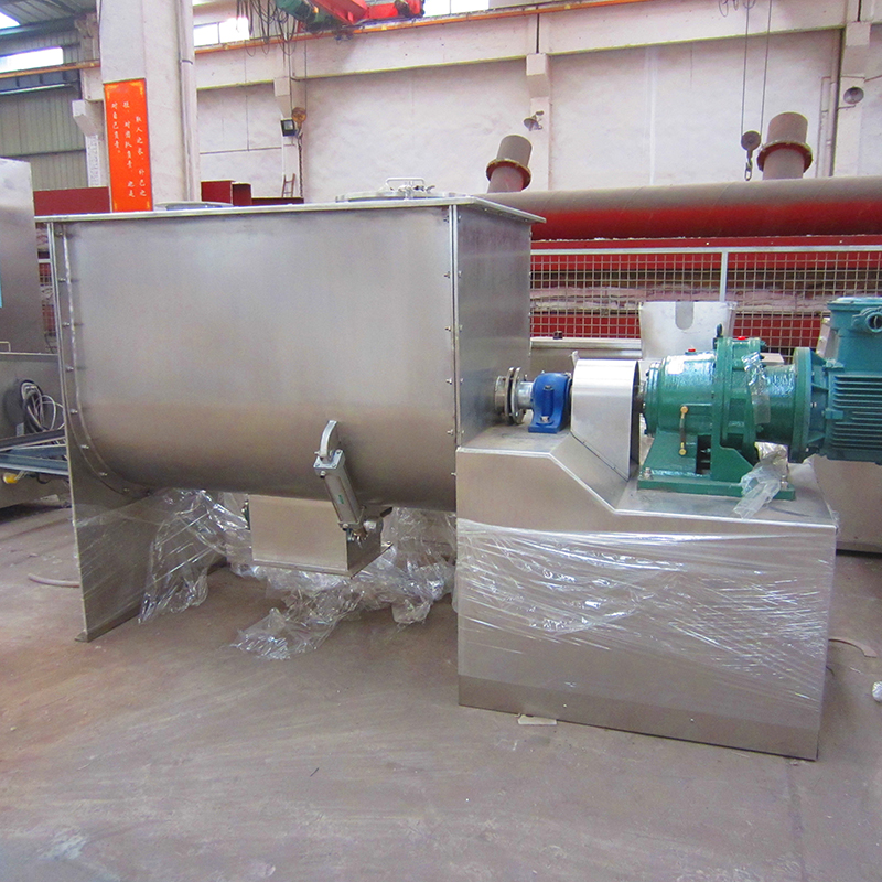 該機(jī)型由容器、螺旋攪拌葉片和傳動(dòng)部件組成:螺旋葉片一般做成雙層或三層,外層螺旋將物料從兩側(cè)向中央?yún)R集,內(nèi)層螺旋將物料從中央兩側(cè)輸送,形成對(duì)流混合。